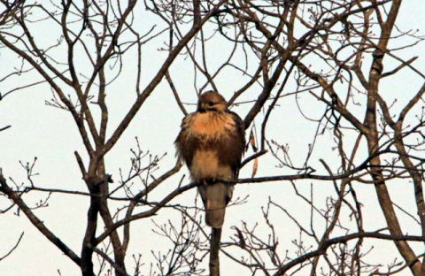 はるか遠くのノスリさん。高いところで見張っています。