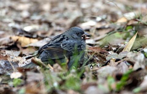落ち葉のたまっているところで、落ち葉を蹴り散らして餌