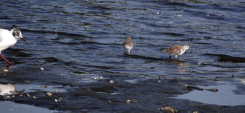 本日は、飛び入りのお客さん、ハマシギが2羽来ておりました。