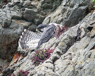 ハヤブサの夫婦?。左のハヤブサの尾羽が二つあるのでは?。