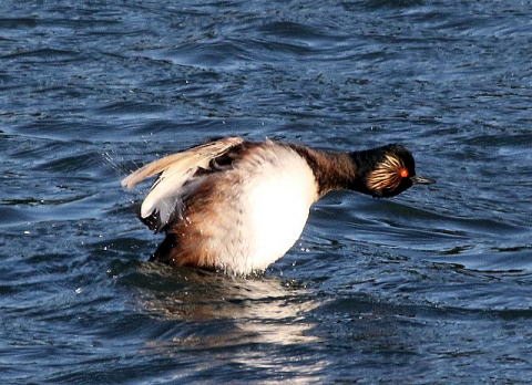 朝のメダイ待ちの時写したハジロカイツブリ。