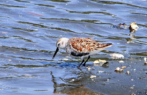 ハマシギは干潟に嘴を差し込んでエサを取ります。