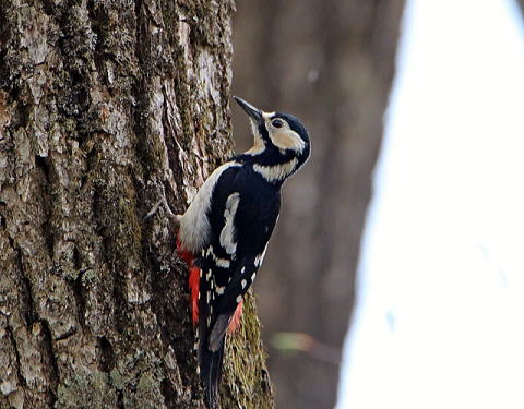 お腹が空いたのか、木道近くの新芽の出た木に、餌を探しに