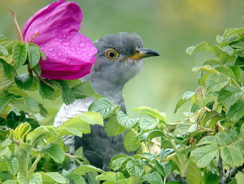 中に隠れているカッコウがいます。托卵するために隠れているの