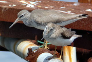 キアシシギも眠そう。中には元気な子が居り、伸びをしております。