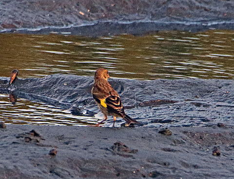 「アレッ」と思ったらカワラヒワでした。干潟に降りているのはとて