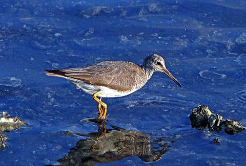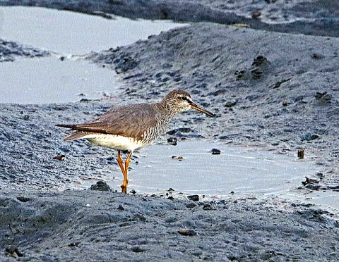 キアシシギも採食中。潮がかなり引いていますので、野島中に分
