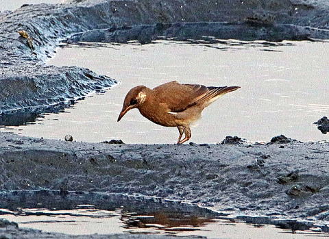早朝の干潟にはムクドリが沢山降りて採食しています。