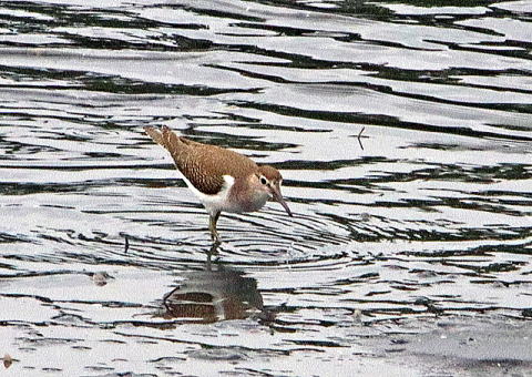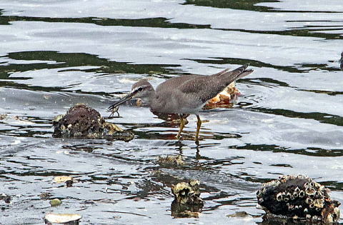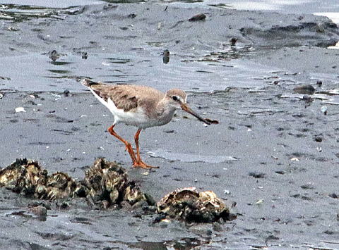 イソシギさんも、ソリハシシギの真似をして干潟を走り、カニをロッ