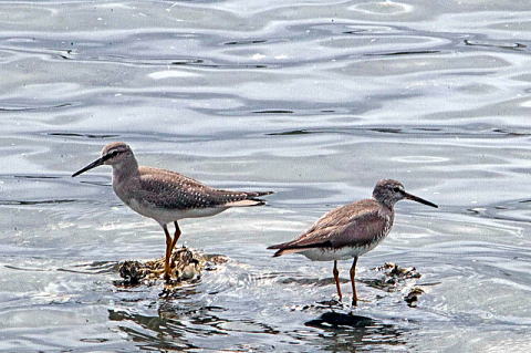 昨日の写真から、左キアシの若鳥、右成鳥。本日はキアシシギが