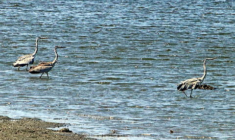 常時干潟に居るのが、アオサギ達です。今年、野島公園で繁殖し