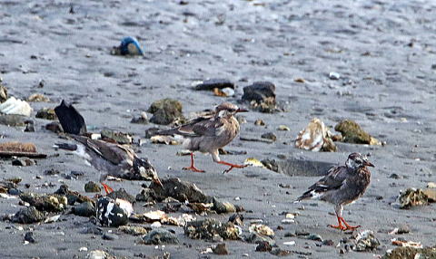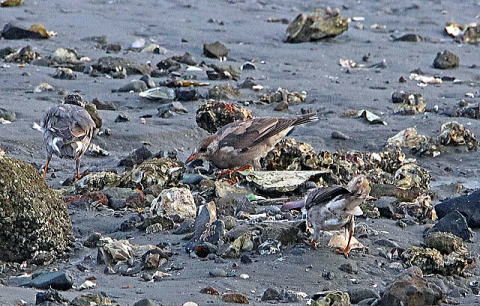 シギ・チの代わりに朝の干潟を占拠しているのが、ムクドリたち。
