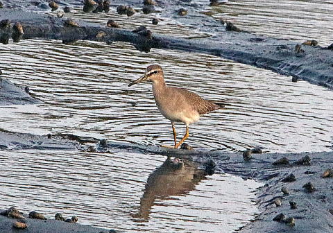 本日キアシシギ2羽、ソリハシシギ1羽が野島のシギ・チドリの現状