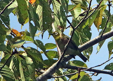 ヒタキを探すのにとても邪魔なのがメジロ君。ヒタキと一緒に飛び