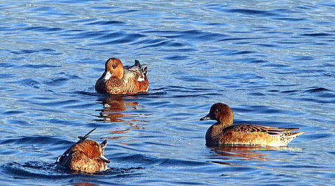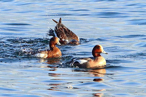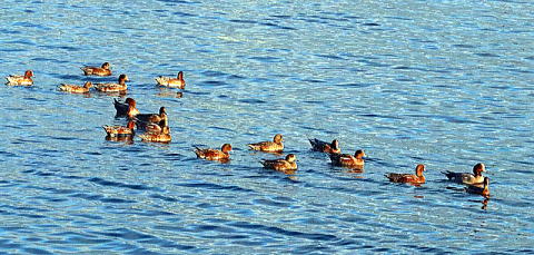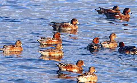 一方、ヒドリガモが21羽来ており、自然海岸沖に浮かんでいました。