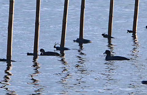 朝の野島、昨日1羽だったオオバンが2羽になっていました。
