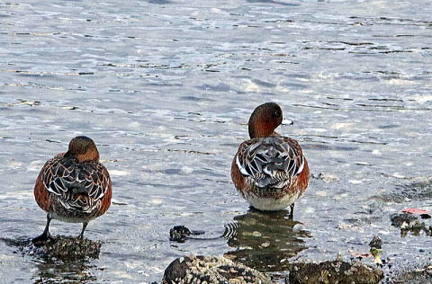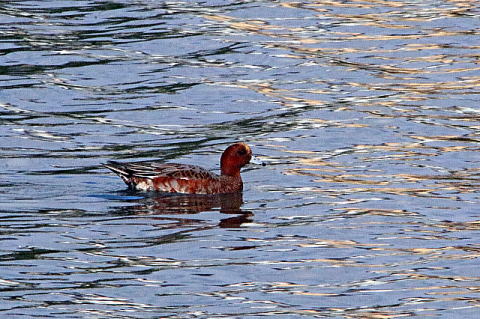 野島水路にヒドリガモが3羽。定着し野島で越冬するヒドリガモが