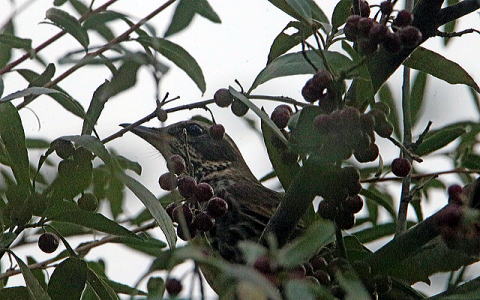 前回、この木の実にツグミ類の仲間がかなりついていたのです。