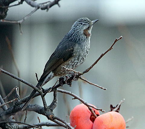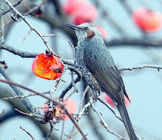 現在のこのカキの木の占有者はヒヨドリたちです。