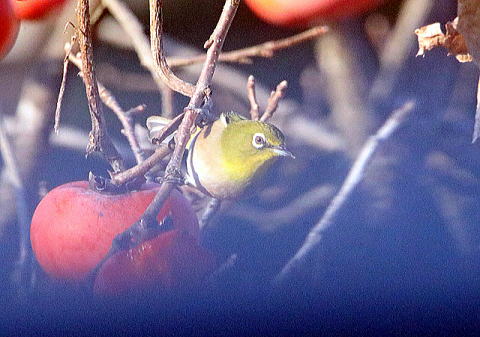 最近常時カキの木から追い出されているメジロさん。いつもキョロ