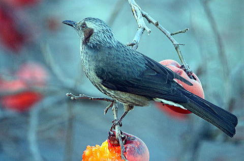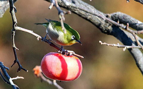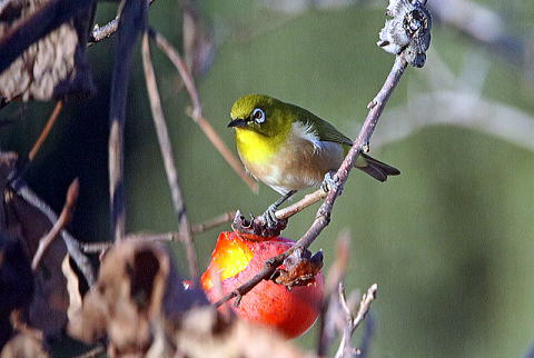 メジロが見せる野生のまなざし。こんな顔もするのです。