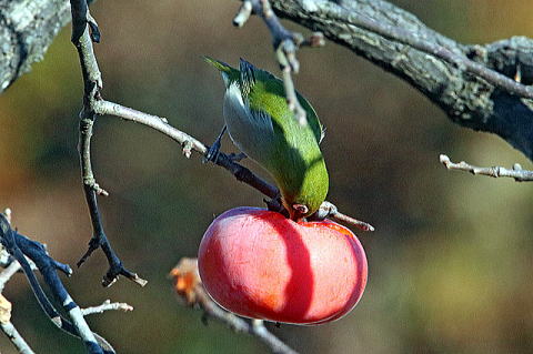 次のカキの木の占有者はこのメジロ達。本日は数が増えて7羽ぐ