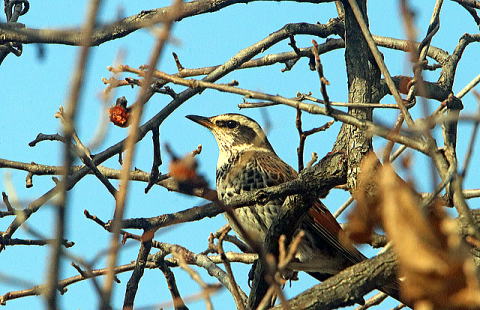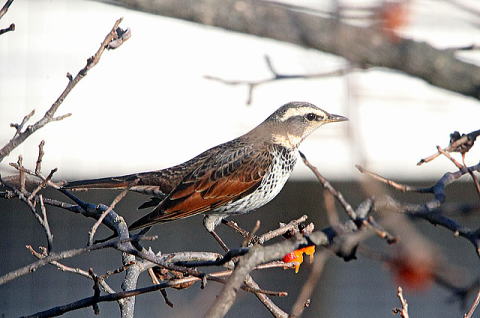 朝から自宅でツグミの鳴き声。今年はツグミが居付いたかと思い写